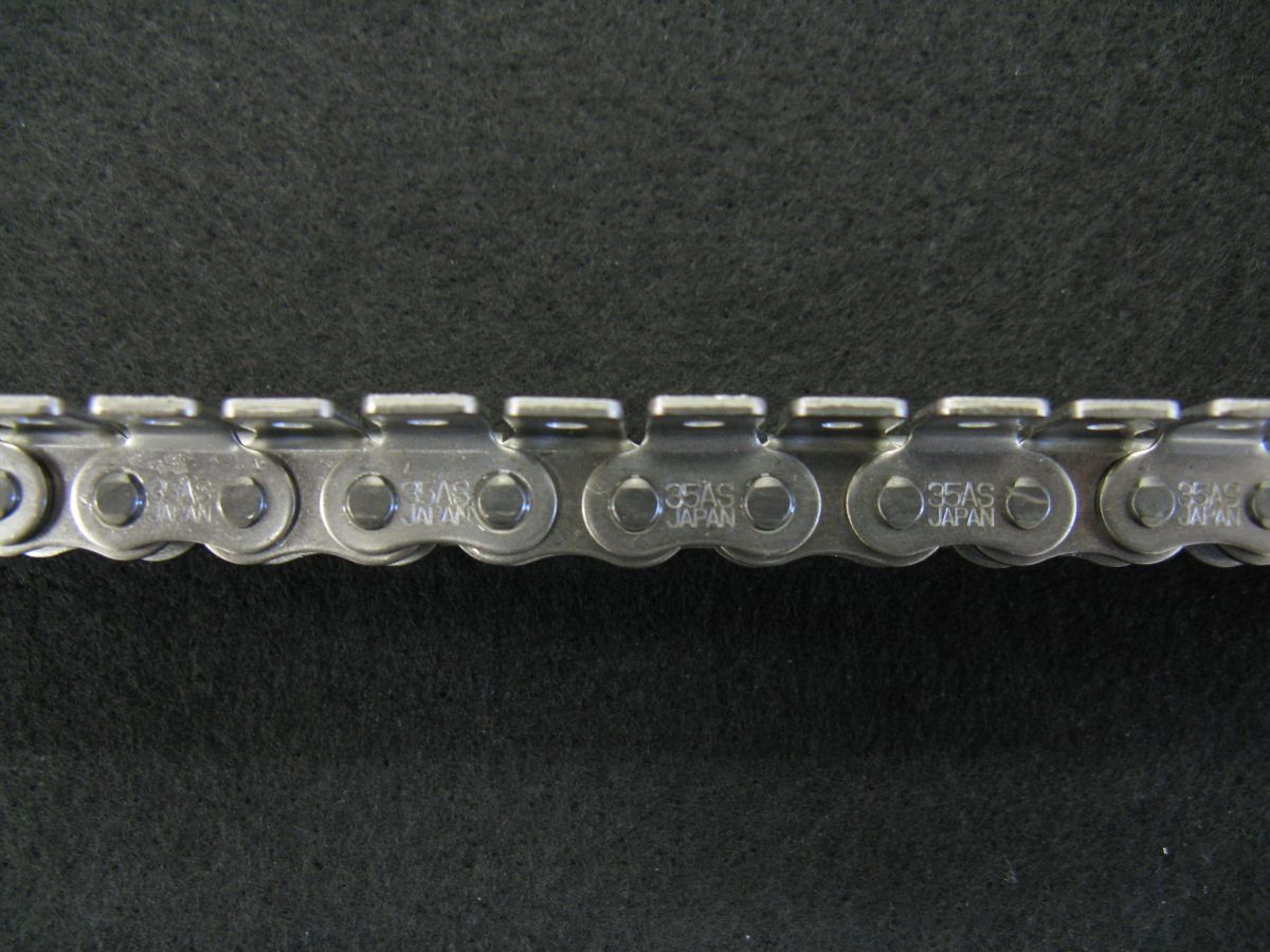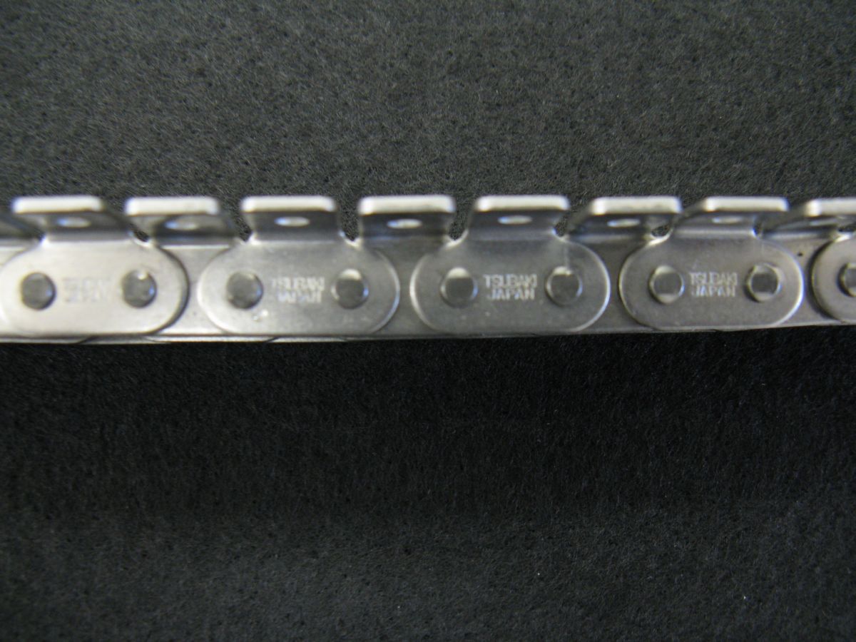 An ISO standard chain introduced by a linking machine manufacturer. It is much more expensive and requires different gears on the twisting head. The pitch of the roller chain is still 3/8". |