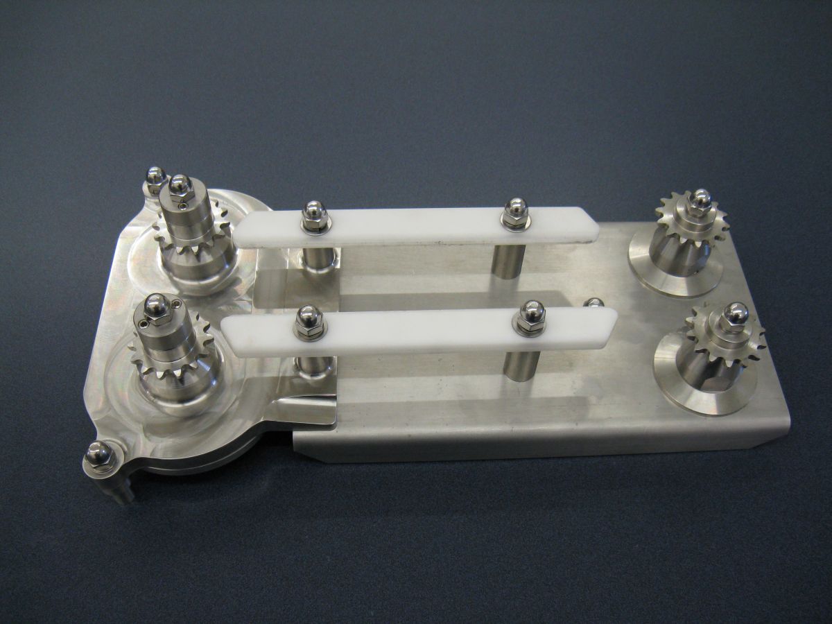 Wharton Associates offers 2 styles of Linking Heads; Stainless Steel and Aluminium. The Stainless Steel version features all stainless steel construction with a formed stainless steel base plate. The Aluminum version features all the same drive components housed in an aluminium gear housing with an aluminium base plate. The table below shows which base plate is used with which pitch chains.